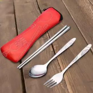 No Brand ช้อนส้อมและตะเกียบ พกพา พร้อมซองกำมะหยี่สีแดง52 บาท